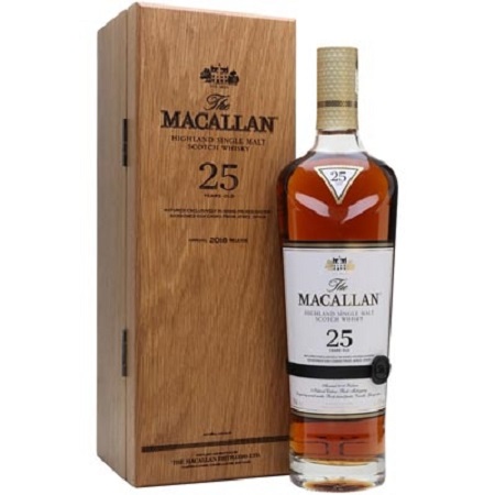 麦卡伦25年威士忌————深桃红色闪耀炽热红铜色泽。弥漫出浓烈的雪梨酒香及柑橘的甜味,如此丰富的口感,就如丝绸般滑软顺喉,持久余味,弥而不散。